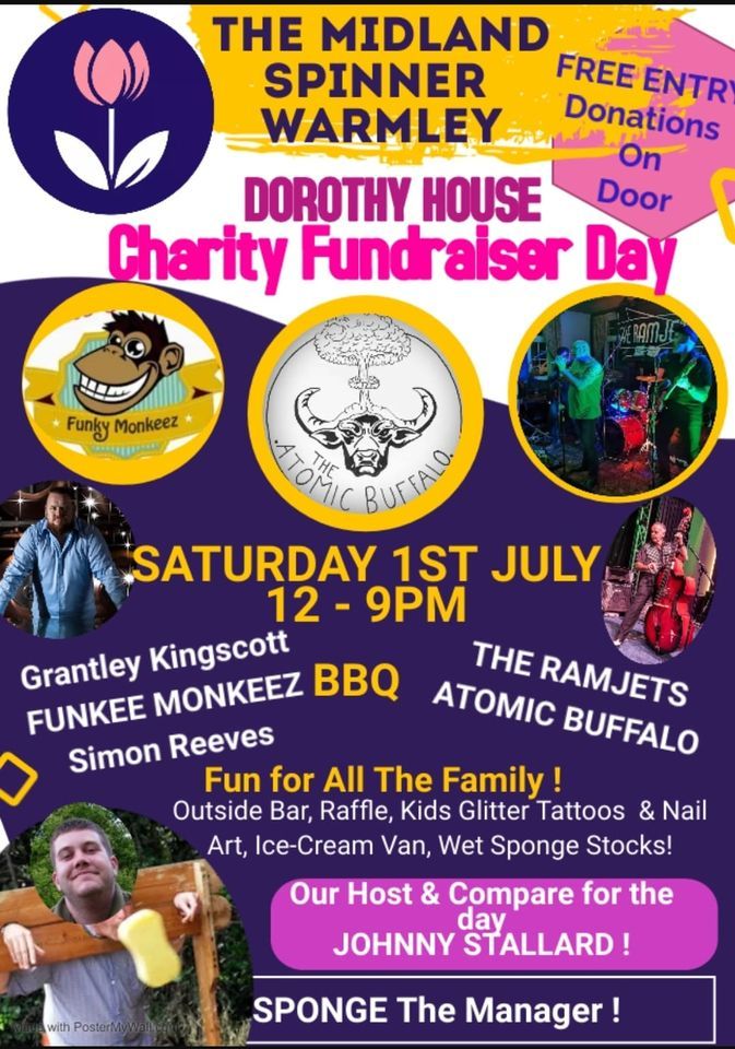 We are hosting our Yearly Charity Family Funday raising funds for DOROTHY HOUSE @ The Midland Spinner on Sat 1st JulyA day of fun for all the family! Singers & Bands throughout the day Hosted by the One & Only JOHNNY STALLARD