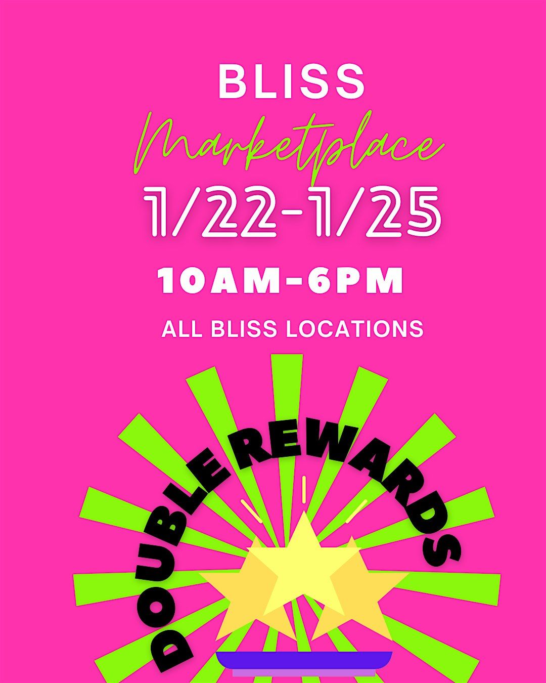 Don't miss out—this event won't last forever! Come see us at your favorite Bliss location and start racking up those rewards.