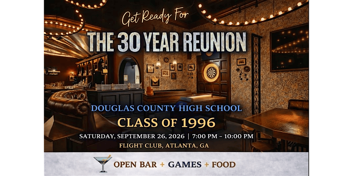Hello, Douglas County High School Class of 1996! Can you believe it has been 30 years since we graduated? Join us for an unforgettable evening of reconnecting, reminiscing, and celebrating at our 30-Year Reunion.