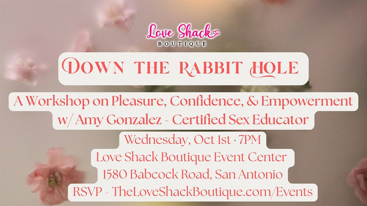Down the Rabbit Hole : A Workshop on Pleasure, Confidence, and Empowerment Wednesday, Oct 1st · 7PM · Love Shack Boutique Event Center · 1580 Babcock Road, San Antonio, TX 78229 · $5