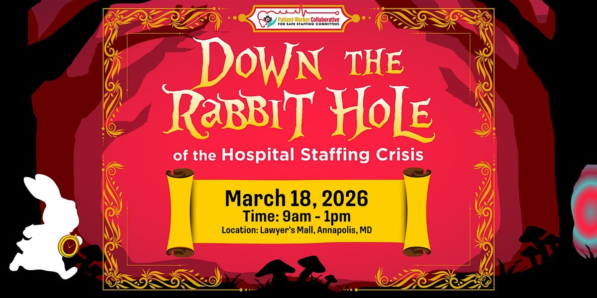 Join workers and patients to occupy Lawyer’s Mall for 4 hours, MD’s average ER wait time, in support of the Safe Staffing Act.