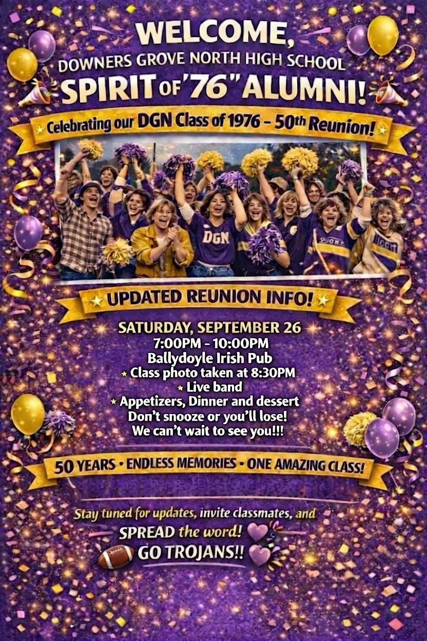 π Downers Grove North Class of 1976 β Golden 50th Reunion! #50!!! π