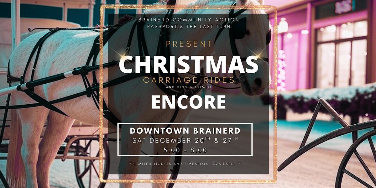 Brainerd Community Action, Passport and The Last Turn have partnered to offer an encore opportunity to share a magical night with friends and family that includes a 15 minute horse drawn carriage ride through beautiful downtown Brainerd!