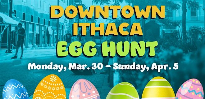 The Downtown Ithaca Egg Hunt runs from March 30 through April 5, 2026. This is a week-long, self-guided event that can be enjoyed at your own pace while exploring Downtown.