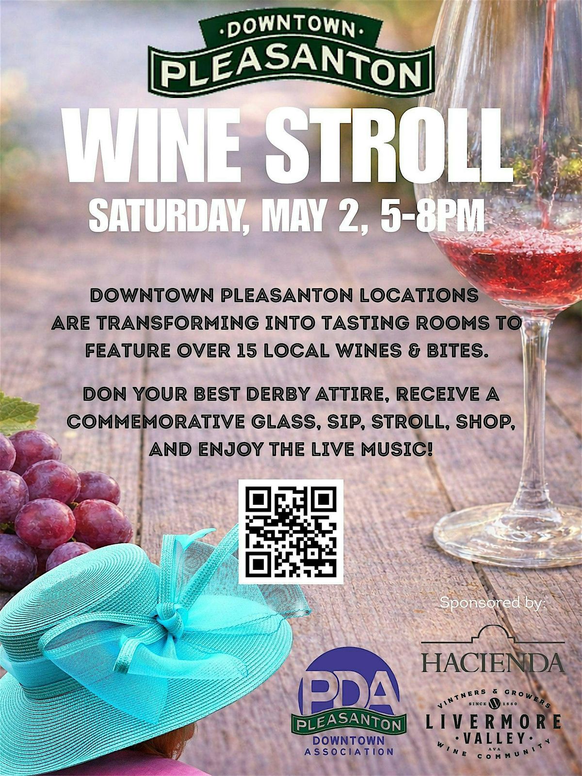 Various downtown locations will become tasting rooms on Saturday, May 2nd from 5-8PM for Pleasanton's Annual Wine Stroll. Guests will spend a beautiful evening in charming downtown Pleasanton sampling wine from Livermore Valley Wineries. There will be live musicians performing throughout Main Street.