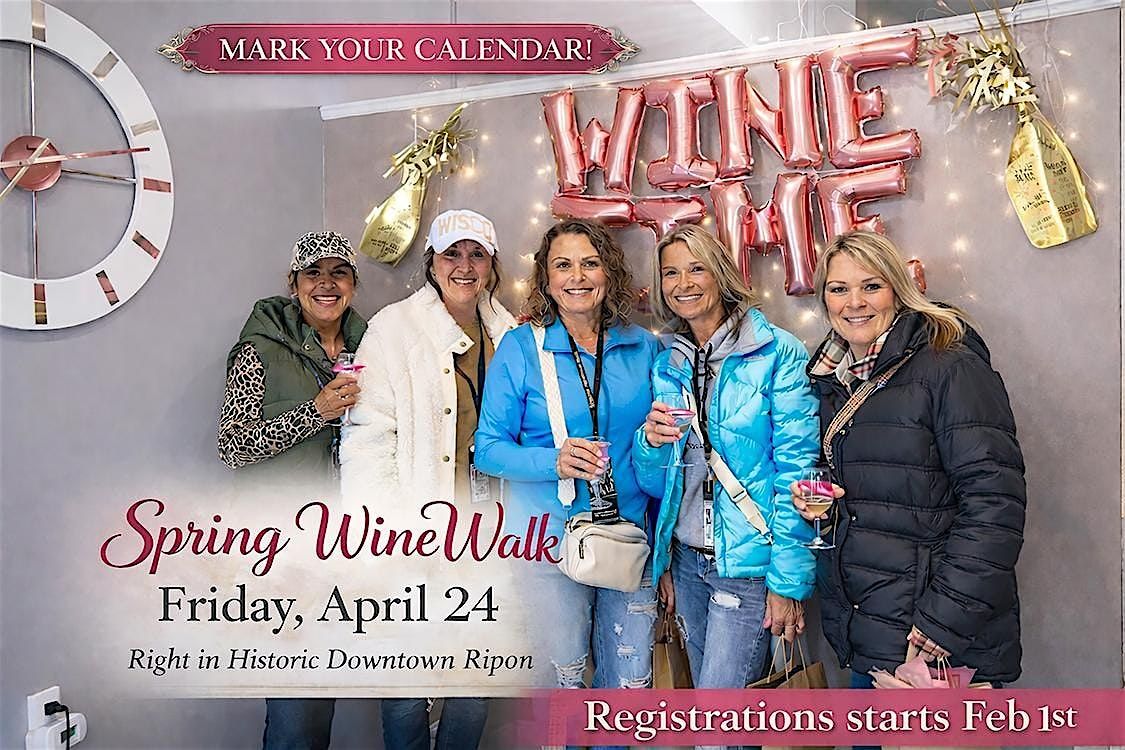 Save the date! The Downtown Ripon Spring WineWalk returns on Friday, April 24, from 5:30 to 8:30 pm.