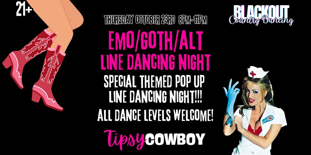 Come join us for a night of dark and dramatic fun at Tipsy Cowboy Country Dive! Get your black eyeliner ready as we dance the night away to all your favorite emo, alternative, and goth tunes. Whether you're a seasoned line dancer or a newbie, this event is for everyone who loves to embrace their inner darkness on the dance floor. So throw on your best black attire and get ready to stomp and twirl with us under the neon lights of downtown Salem. See you there!