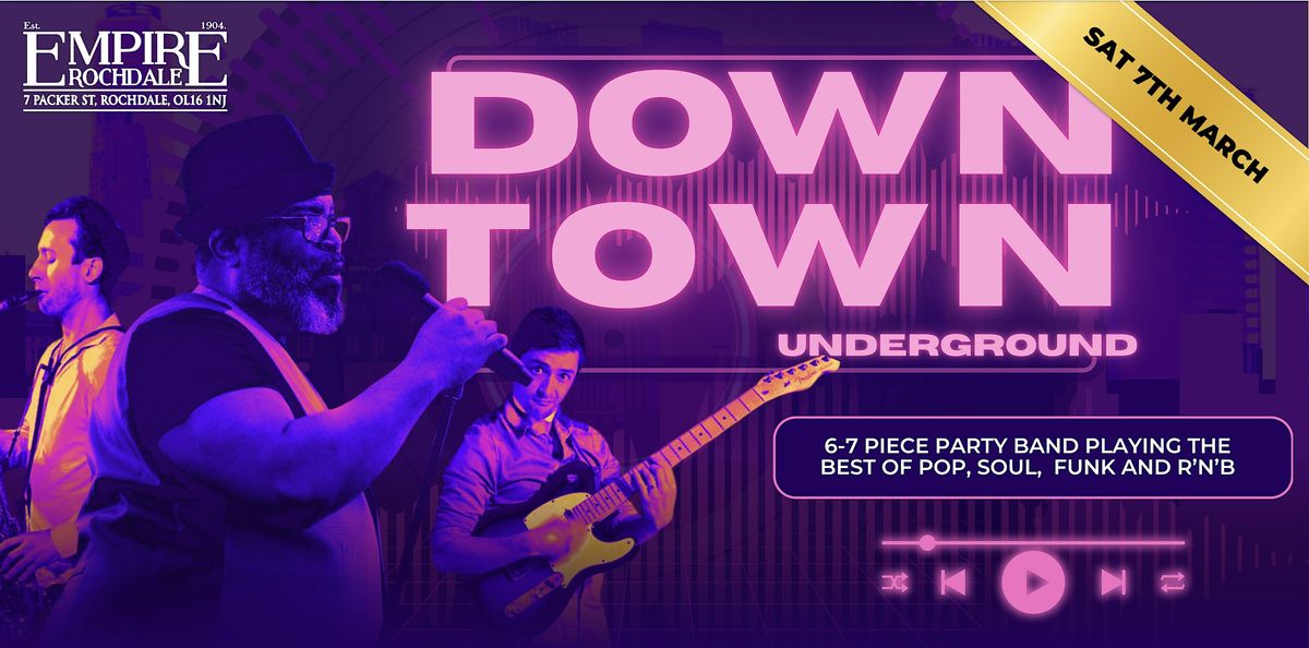 Downtown Underground bring a night of funk, soul, disco and dancefloor classics to Empire Rochdale. Known for tight musicianship and feel-good grooves, they deliver the kind of set that keeps the floor busy all night long.