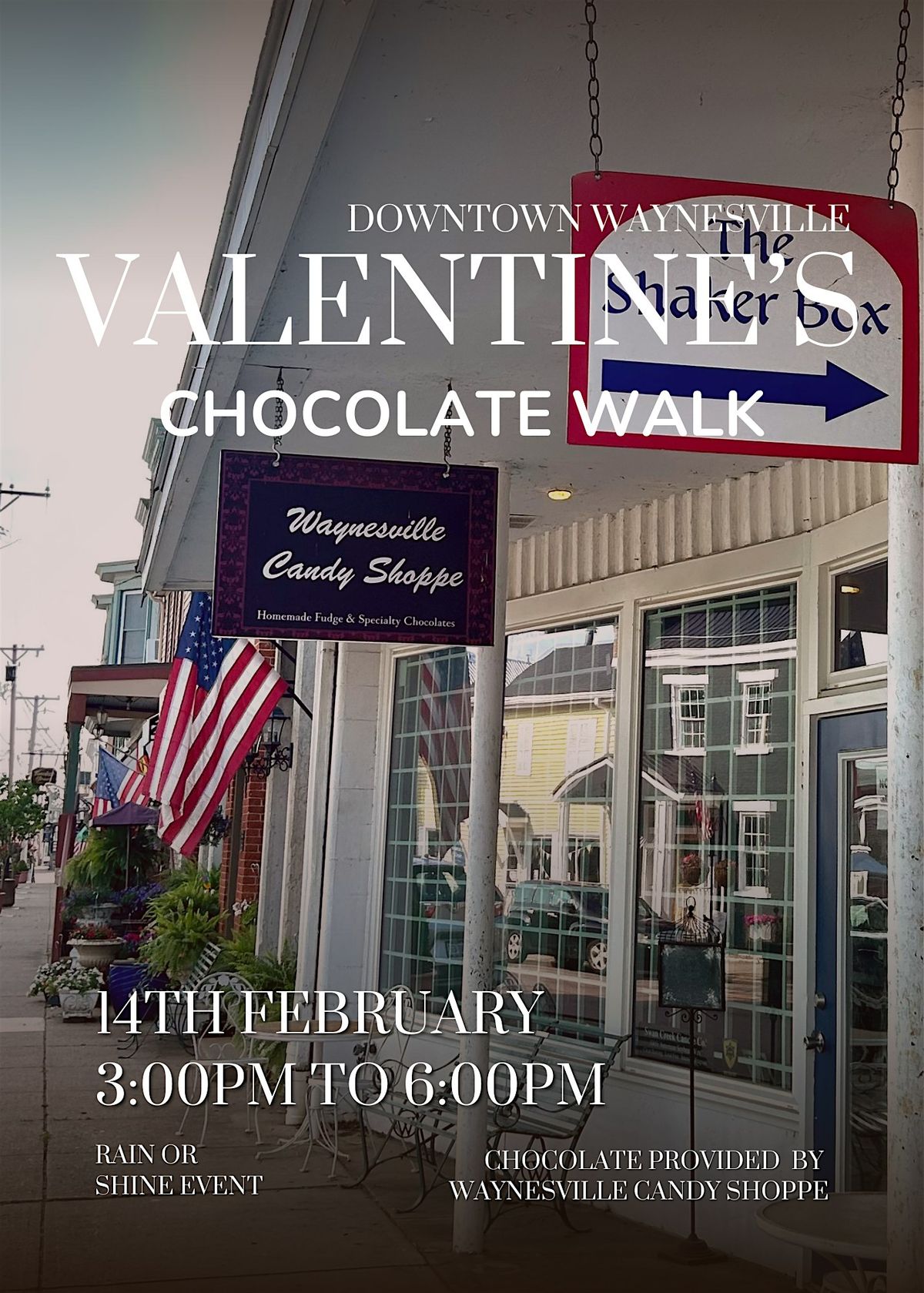 Participating shops will be offering delicious chocolate samples provided by our very own local Waynesville Candy Shoppe, with each location featuring a different decadent treat while supplies last.