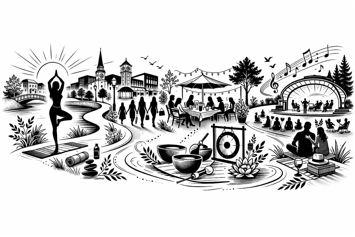The Downtown Wheaton Summer Wellness Retreat is an afternoon immersion designed to invite presence, connection, and seasonal renewal in the heart of the community. Set within the walkable rhythm of downtown Wheaton, this retreat blends mindful movement, reflective practice, nourishing community time, and sound-based relaxation to create a complete day of integration and restoration.