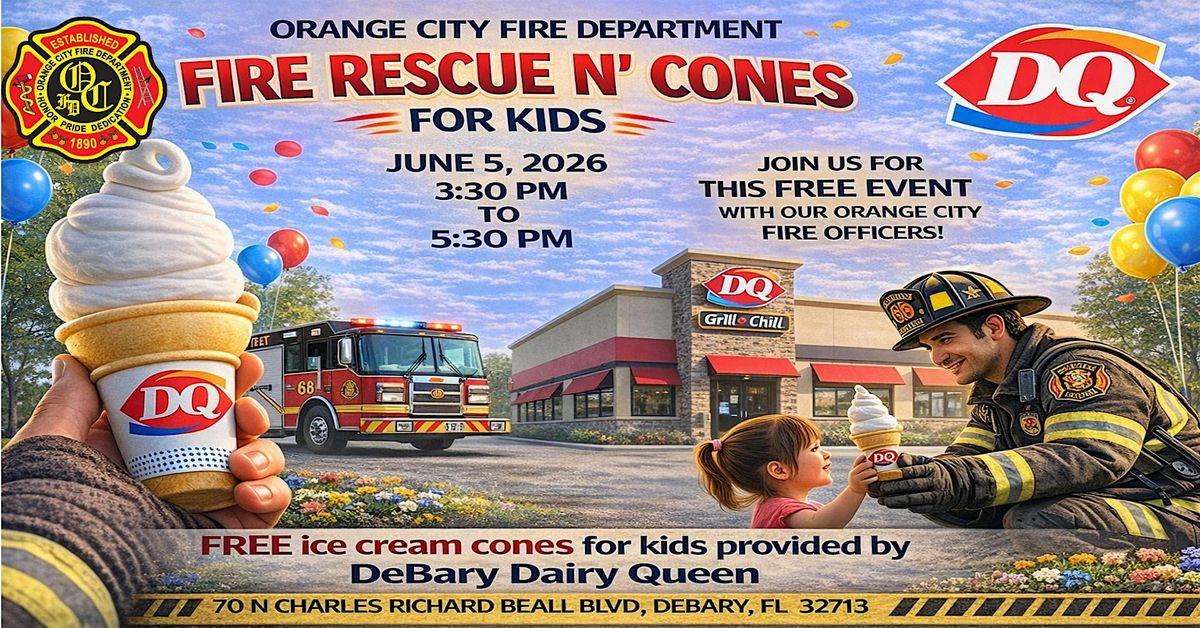 We're back by popular demand! Based on the overwhelming love and response we received last year, the Orange City Fire Department and DeBary Dairy Queen are excited to bring you Fire Rescue N' Conesβa sweet community event for kids and families!
