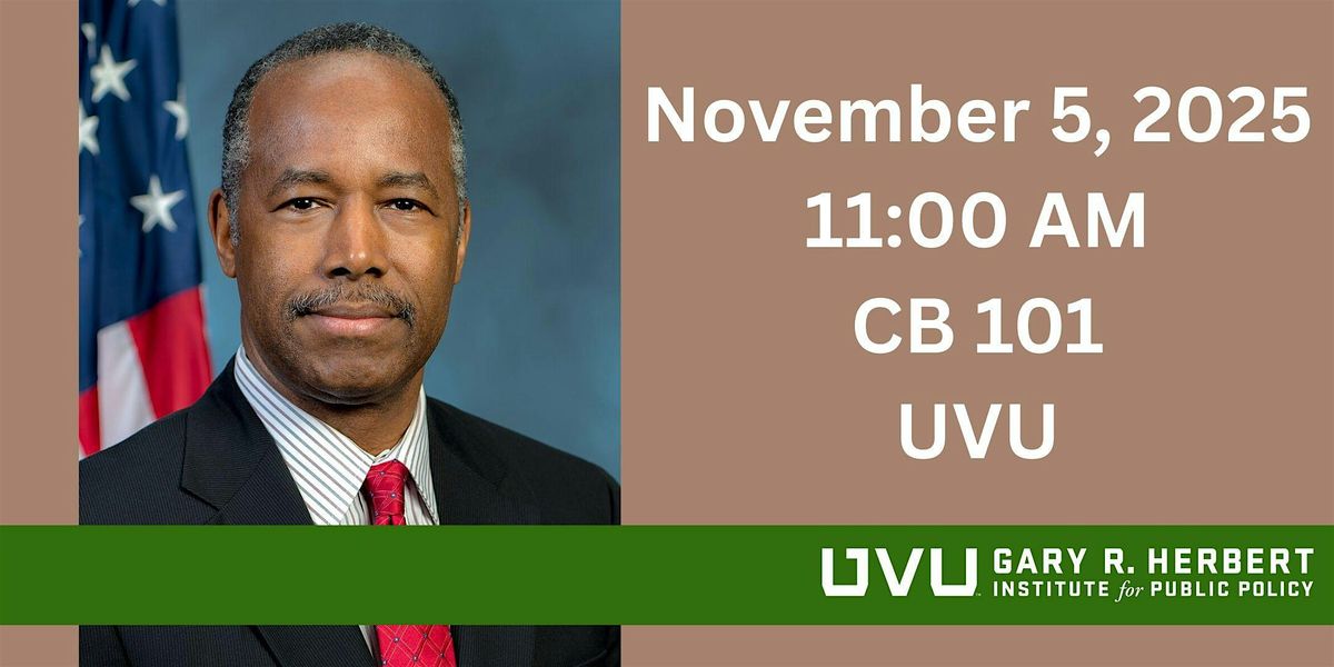 Get ready for an exciting event with the one and only Ben Carson! Join us at the UVU Clarke Building for an unforgettable experience. This in-person event will give you the chance to meet Ben Carson in real life and hear from him firsthand. Don't miss out on this opportunity to be inspired and motivated by his incredible story and insights. Stay tuned for more details!