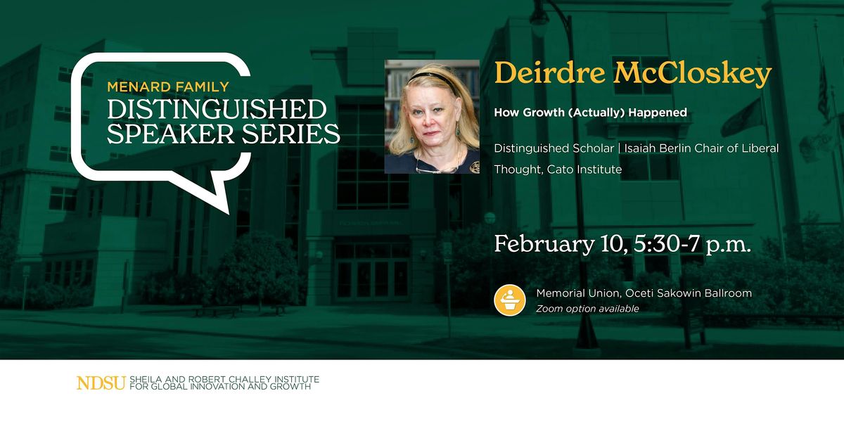 The Menard Family Distinguished Speaker Series hosts world thought leaders to share their ideas with the NDSU community on big questions that explore ways to improve the human condition and create economic opportunity. The Distinguished Speaker Series is sponsored by the Challey Institute thanks to a generous gift by the Menard Family.