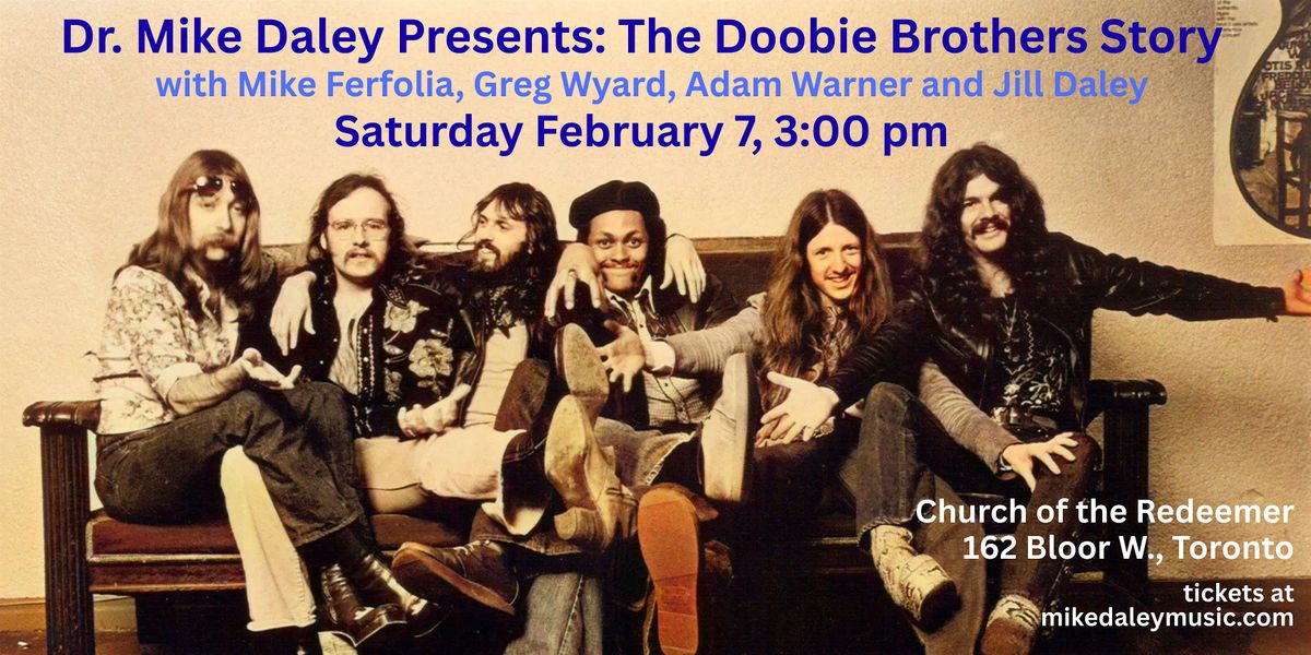 With hits like "Listen To The Music," "What A Fool Believes" and "China Grove," the Doobie Brothers are one of the most beloved rock groups of all time. Dr. Mike Daley Presents: The Doobie Brothers Story is an entertaining lecture-concert celebrating their career and music, featuring Mike on guitar and vocals, Mike Ferfolia on bass and vocals, Adam Warner on drums and vocals, Greg Wyard on guitar and vocals and Jill Daley on piano and violin.