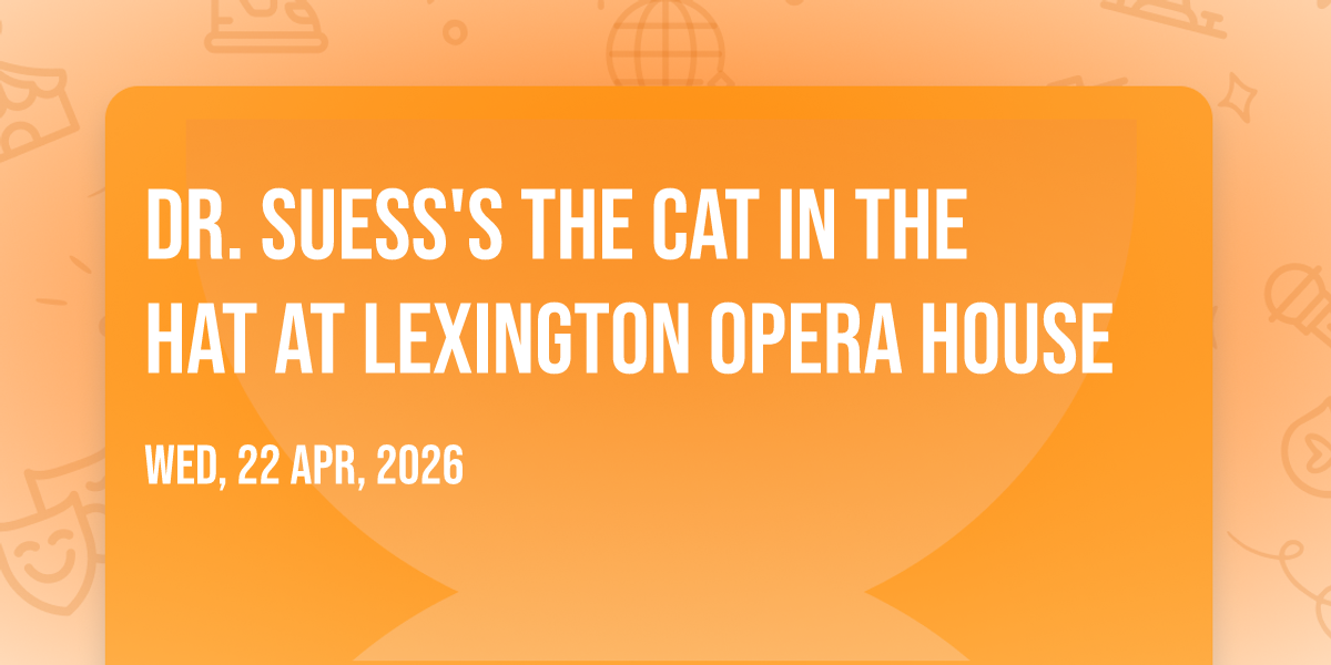β¨ Enter a world of endless possibilities at Dr. Suess's The Cat In The Hat at Lexington Opera House, where every moment tells a story! ποΈ The stunning Lexington Opera House in vibrant Lexington, KY transforms into a realm of wonder on April 22nd, 2026 at 07:00 PM. π They have crafted an experience that goes beyond the ordinary, combining elements of surprise, delight, and pure entertainment. Every detail has been thoughtfully considered to ensure your journey with us is nothing short of extraordinary. π― Join fellow adventure seekers and memory makers in this celebration of imagination and innovation. π Reserve your spot today and be part of something truly special!
