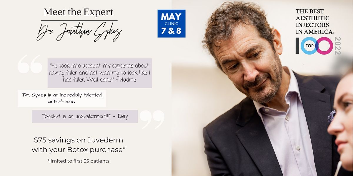 Dr. Jonathan Sykes Injectables Clinic | Book a consultation with one of the best Aesthetic Injectors in America on May 7 & 8!About this Event