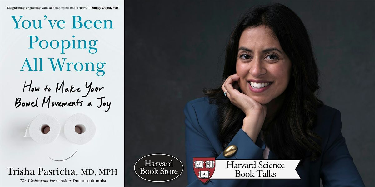 Harvard Book Store, the Harvard University Division of Science, and the Harvard Library welcome Dr. Trisha Pasricha—Director of the Institute for Gut-Brain Research at Beth Israel Deaconess Medical Center, Assistant Professor of Medicine at Harvard Medical School, and writer of the weekly "Ask a Doctor" column for The Washington Post —for a discussion of her new book, You've Been Pooping All Wrong: How to Make Your Bowel Movements a Joy. This event will take place at the Harvard Science Center, Hall E, located downstairs at 1 Oxford St, Cambridge. Elevator access is available for those who need it. Following the presentation will be a book signing.
