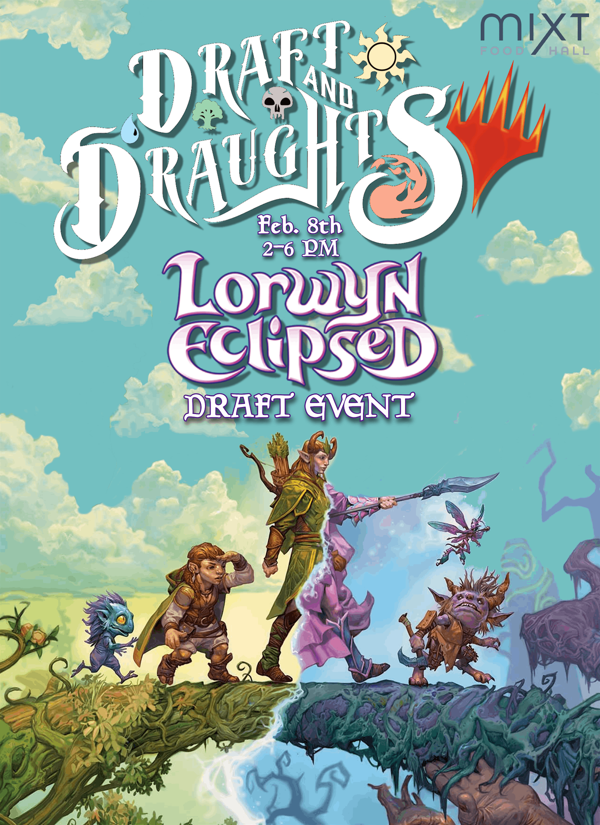miXt Food Hall presents Draft & Draughts! A series of events focused on Magic The Gathering. Please join us for our first event which will be a draft for Lorwyn Eclipsed! Sign ups are limited so secure your slot today for only $25!