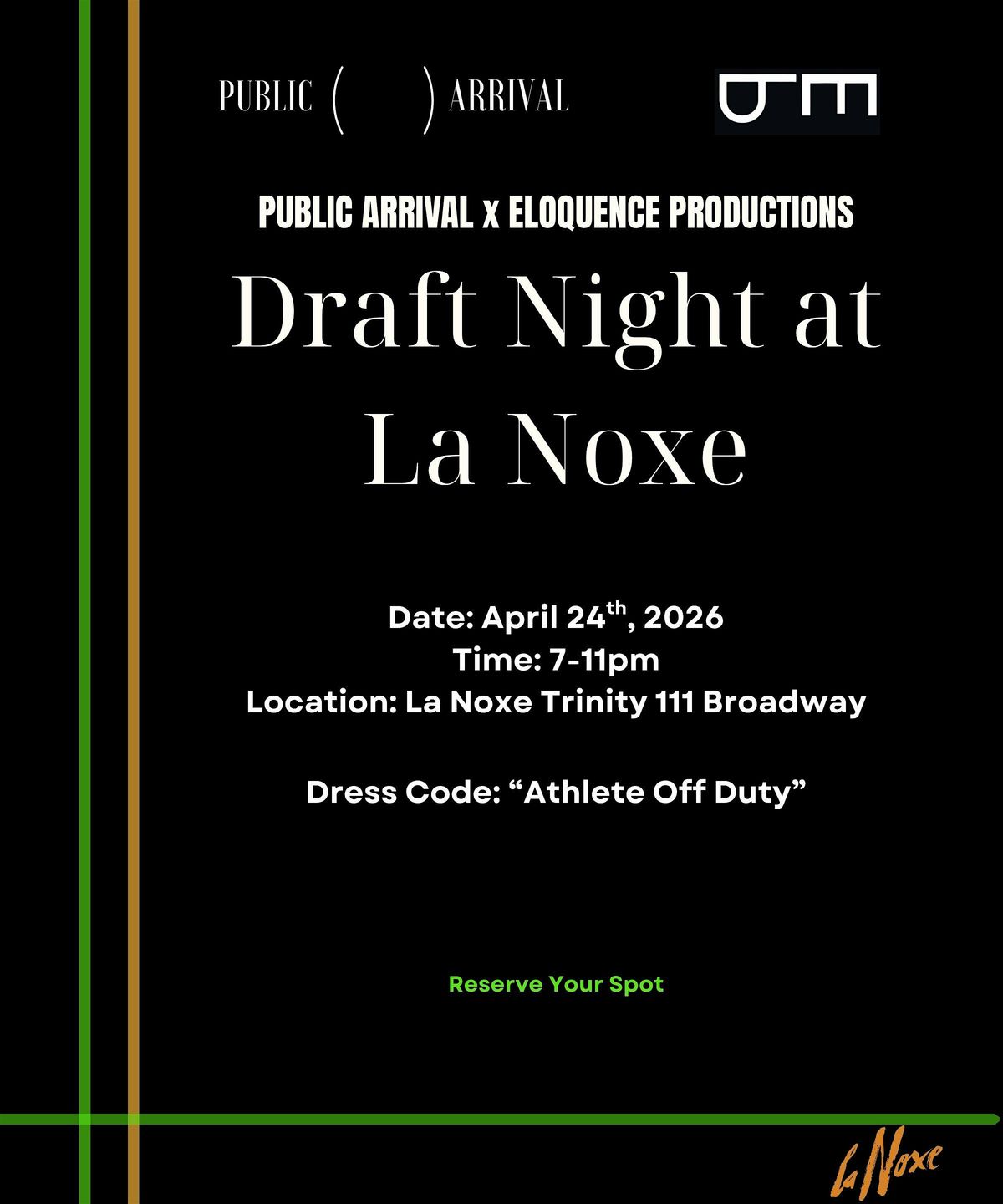 Step into a high-energy, elevated viewing experience where sports, fashion, and nightlife collide. Draft Night at La Noxe is not your typical watch party, it’s a curated evening celebrating the culture, style, and excitement of draft night.