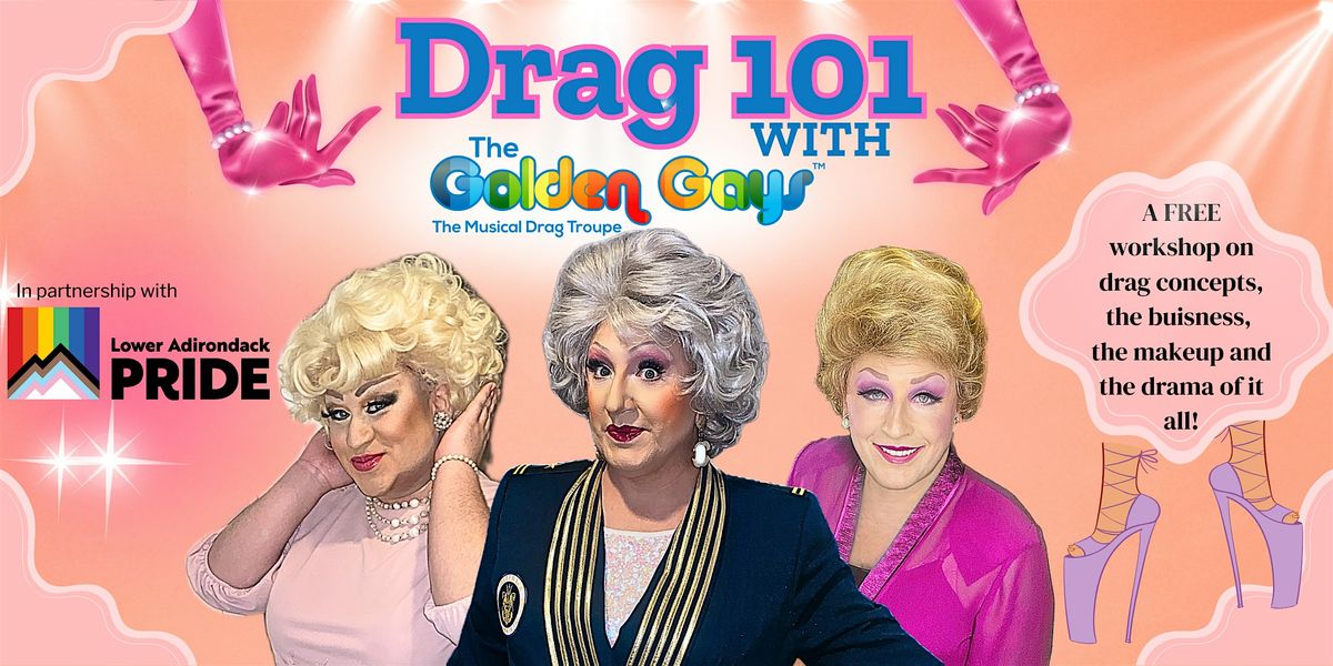 Welcome to Drag 101 with The Golden Gays at Black Walnut Books! Join us on April 17th at 7:00 PM for a fabulous evening filled with laughter, glamour, and entertainment.