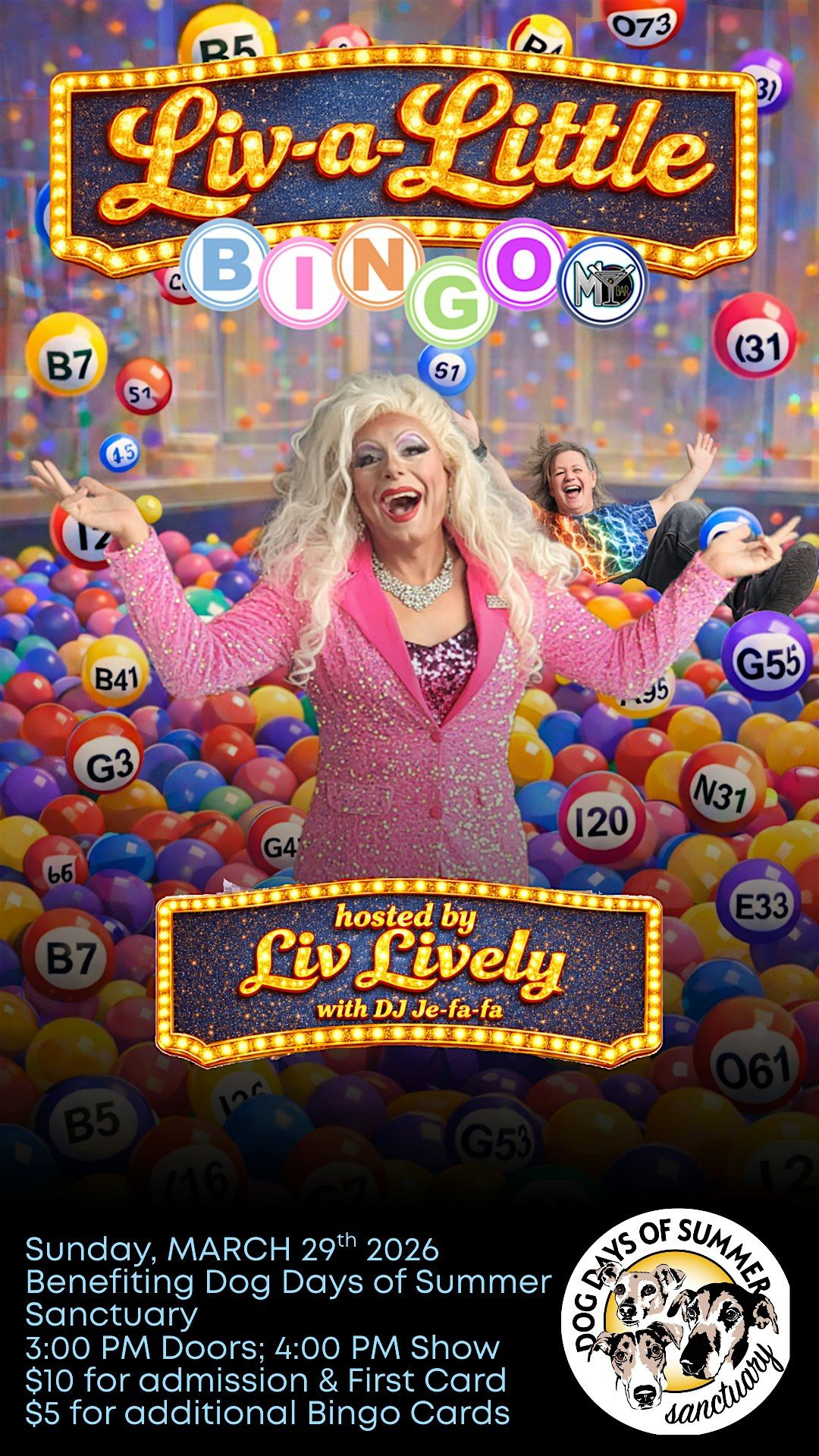 Come join us at MY BAR + Pizza and more! - LGBTQ Friendly Hot Spot for a fabulous evening of drag bingo on MARCH 29 at 3:00 PM (Pacific Time).