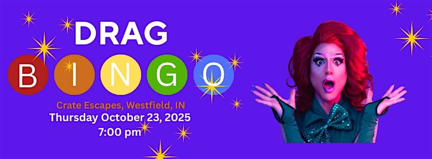 🎉 Drag Bingo at Crate Escapes 🎉📍 Crate Escapes, Westfield, IN📅 Thursday, October 23rd🕖 7:00 PM
