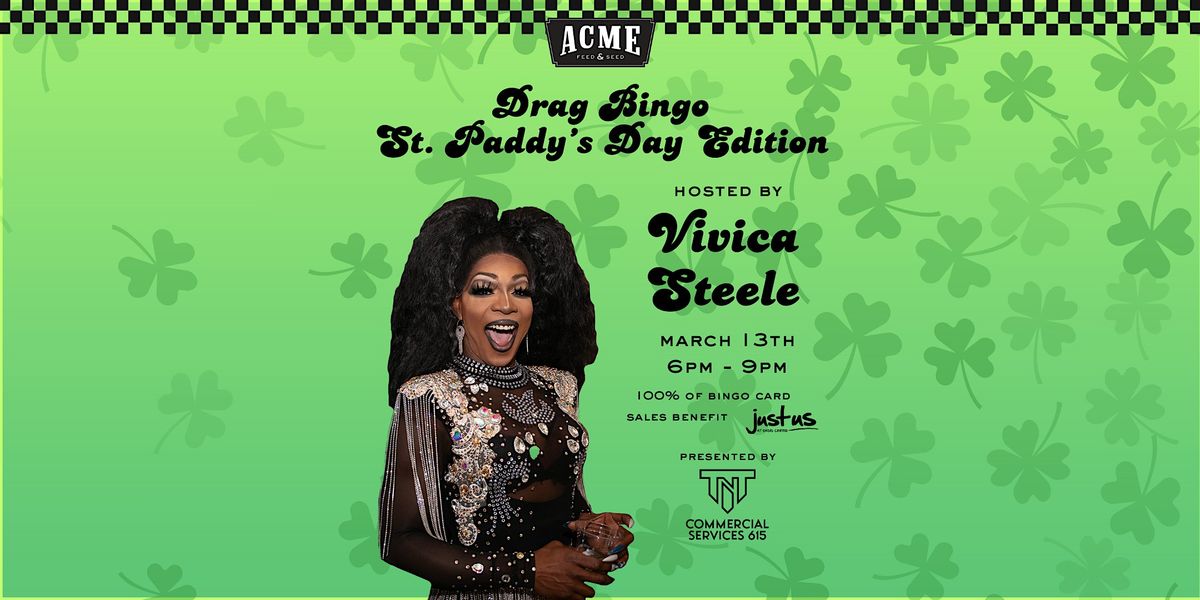 Join us on Friday, March 13th from 6-9pm on Acme's second floor for Drag Bingo St. Patrick's Day edition hosted by Vivica Steele!
