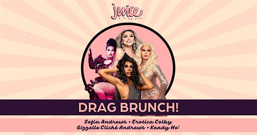 Get ready for a fabulous Drag Brunch experience at the cozy Juice Wine Bar! Join us in person for a lively afternoon filled with stunning performances, great vibes, and delicious eats. Whether you're a brunch enthusiast or a drag show fan, this event promises fun, laughter, and unforgettable moments. Bring your friends and enjoy the perfect mix of drag glamour and tasty treats. See you there!