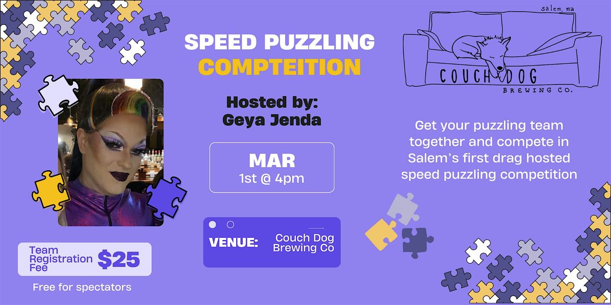 Register now to take part in a one-of-a-kind speed puzzling event at Couch Dog Brewing Company! This is the only speed puzzling competition in history that's been hosted by a drag queen (that we could find). Enjoy a drag number during the opening ceremony, have fun solving a puzzle with friends, then enjoy a beer and a final number as the winning team is announced in the closing ceremony!
