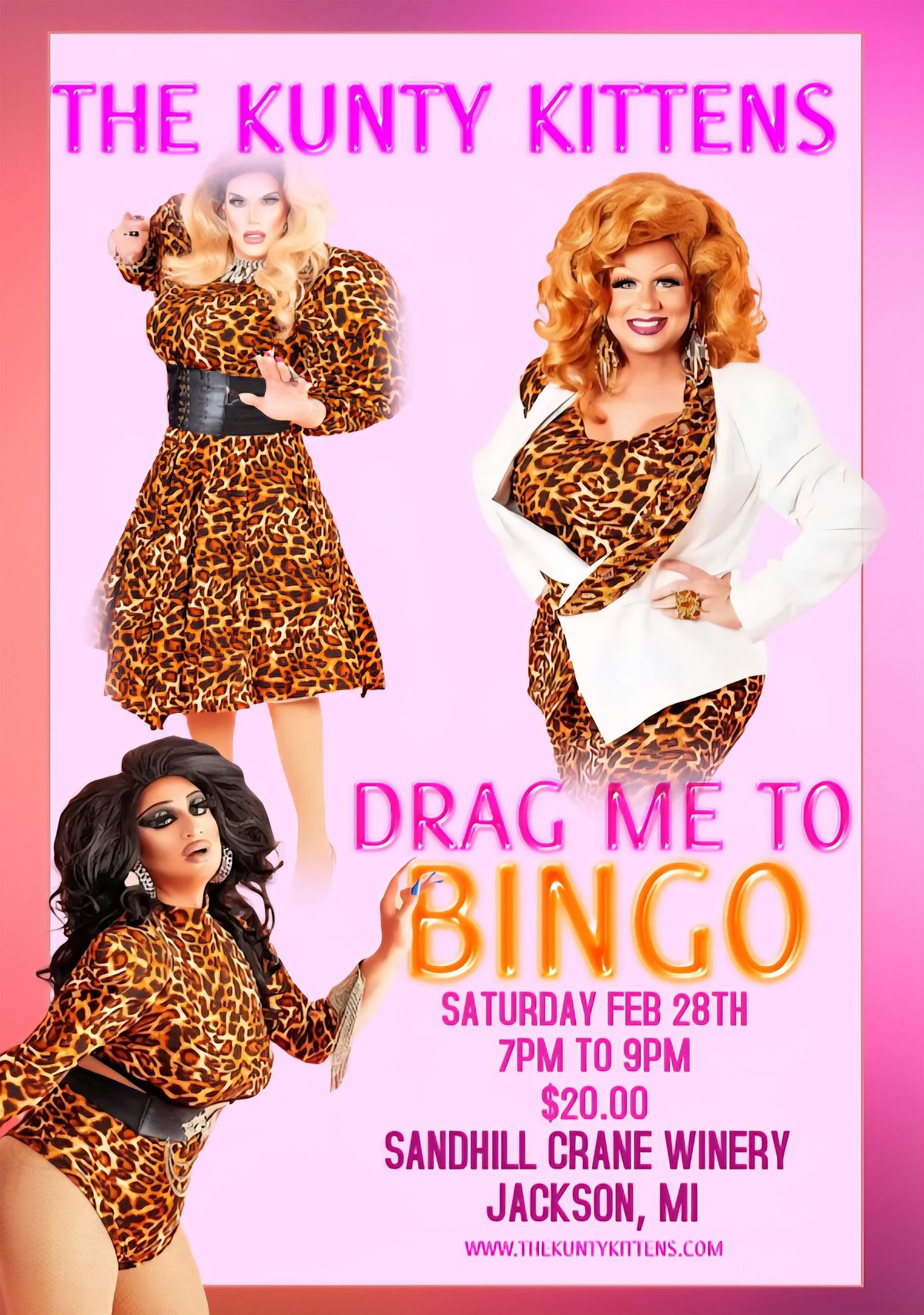 Join The Kunty Kittens Saturday Febuary 28th for fun at Jackson hottest spot Sandhill Crane Winery for Drag Me to Bingo!