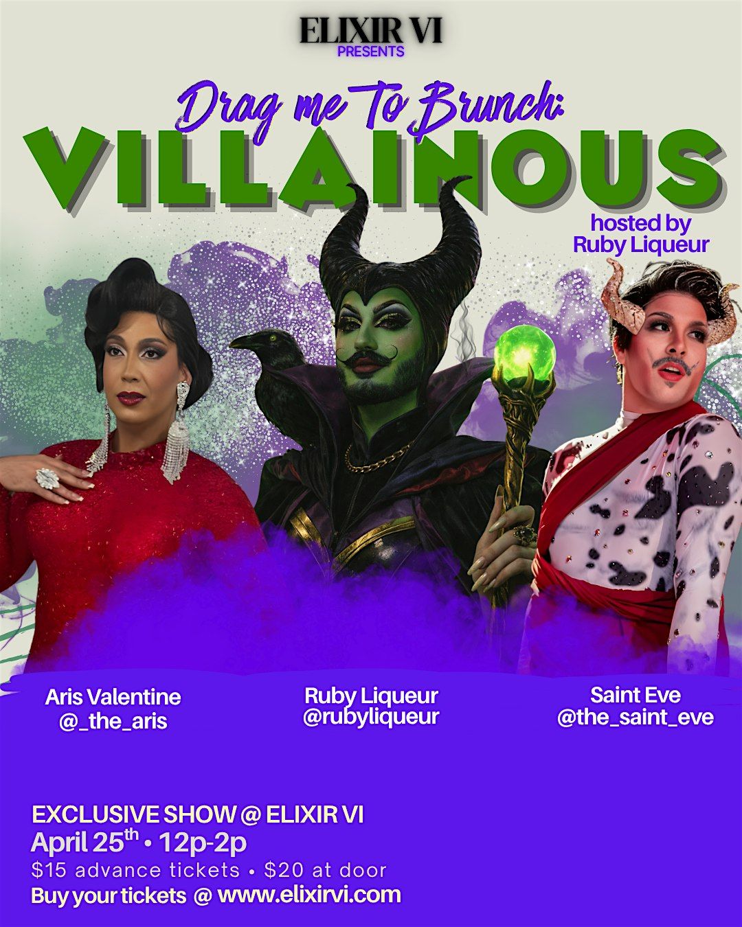 Bring your favorite people, dress cute, and say yes to brunch with personality. Drag Me To Brunch: Villainous is glamorous, welcoming, and meant to be enjoyed loud and together.