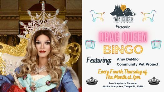 Drag Queen Bingo is back at Two Shepherds Taproom for 2022! Join us, Amy DeMilo, and Community Pet Project, every fourth Thursday of the month from 7-9pm!Bingo is 10 rounds and to play you make a $10 donation to Community Pet Project at the event. Each round winner will receive some PUP-tastic prizes and goodie bags!
