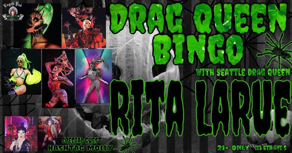 Join us for Drag Queen Bingo with Seattle Drag Queen Rita LaRue and special guest Hashtag Molly!! Tuesday October 4 @ 7:00 PMNO COVER!! First come first served. Seating is limited so be sure to get here early!