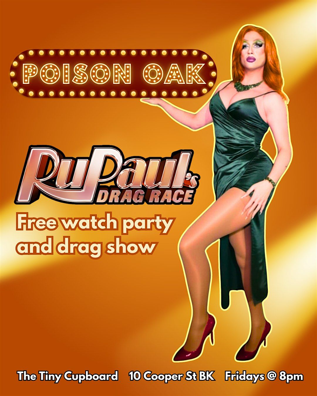 Watch RuPaul's Drag Race every Friday with NYC's very own Poison Oak! A full bar, the biggest TV screen in Brooklyn, and a live drag show!