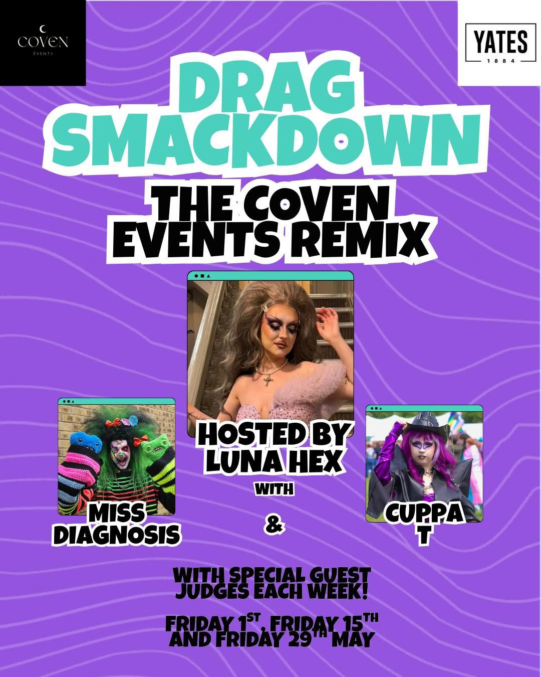 Drag Smackdown is back, and this time, the reins have been passed to Coven Events!10 competitors, 3 weeks, 1 crown 👑