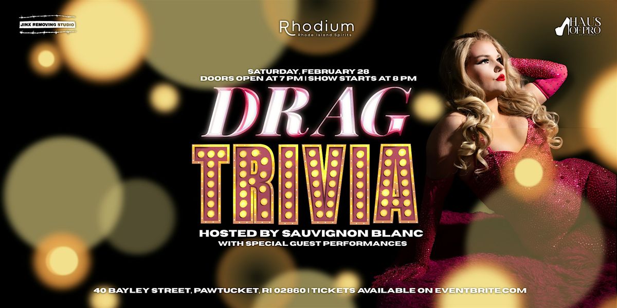 Get ready to test your trivia knowledge at the Rhodium Room Distillery Bar @ RI Spirits on February 28, 2026 at 8:00 PM. Come with your friends and bring your dollar bills for fabulous drag performances by Sauvignon Blanc & extra special guests!