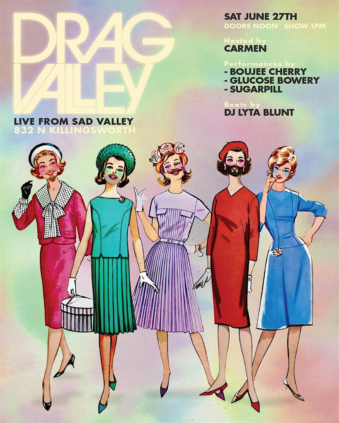 Drag Valley Brunch returns with an iconic cast of Portland Drag Performers ready to give you an always incredible, exceptional, AMAZING DRAG BRUNCH! Come for some incredible drag entertainment, alongside amazing brunch food and drinks by the incredible staff at our venue Sad Valley! DOORS ARE AT NOON / SHOW AT 1pm! Come get silly, sexy and prideful for this amazing event!