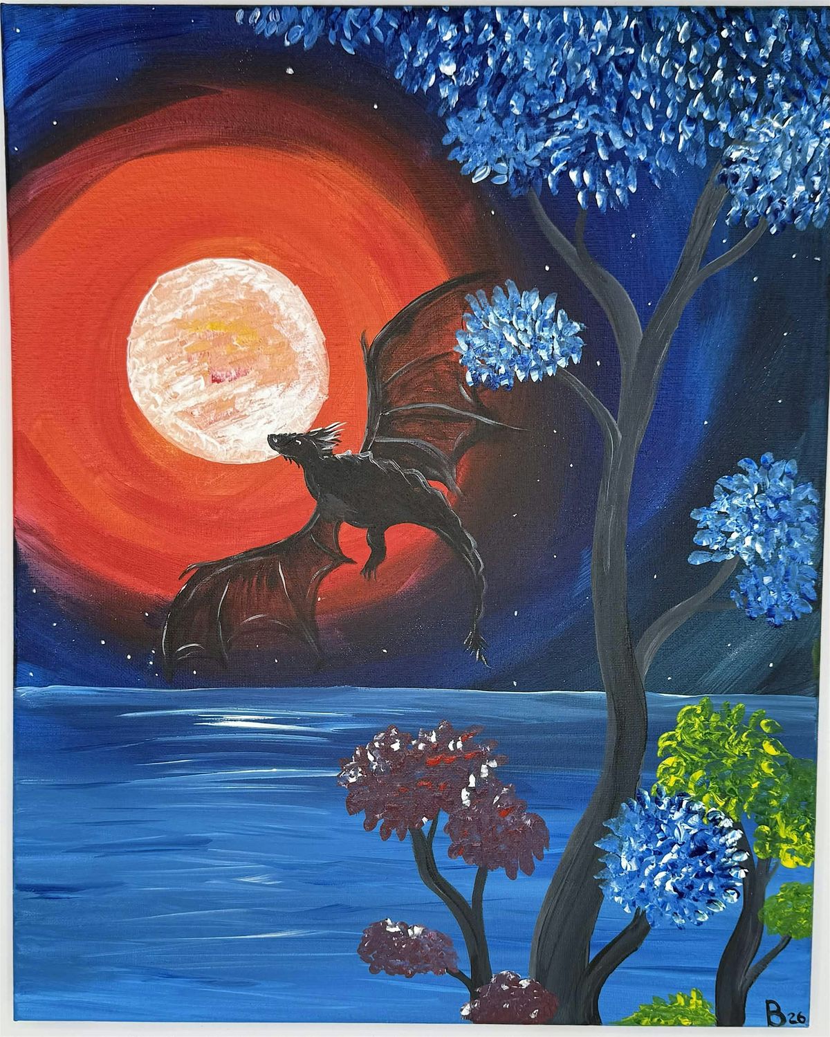 The talented instructor Becky Brennan, owner of Re-Vision Art by B, will guide you every step of the way to help your dragon take flight on a 16x20 in canvas.