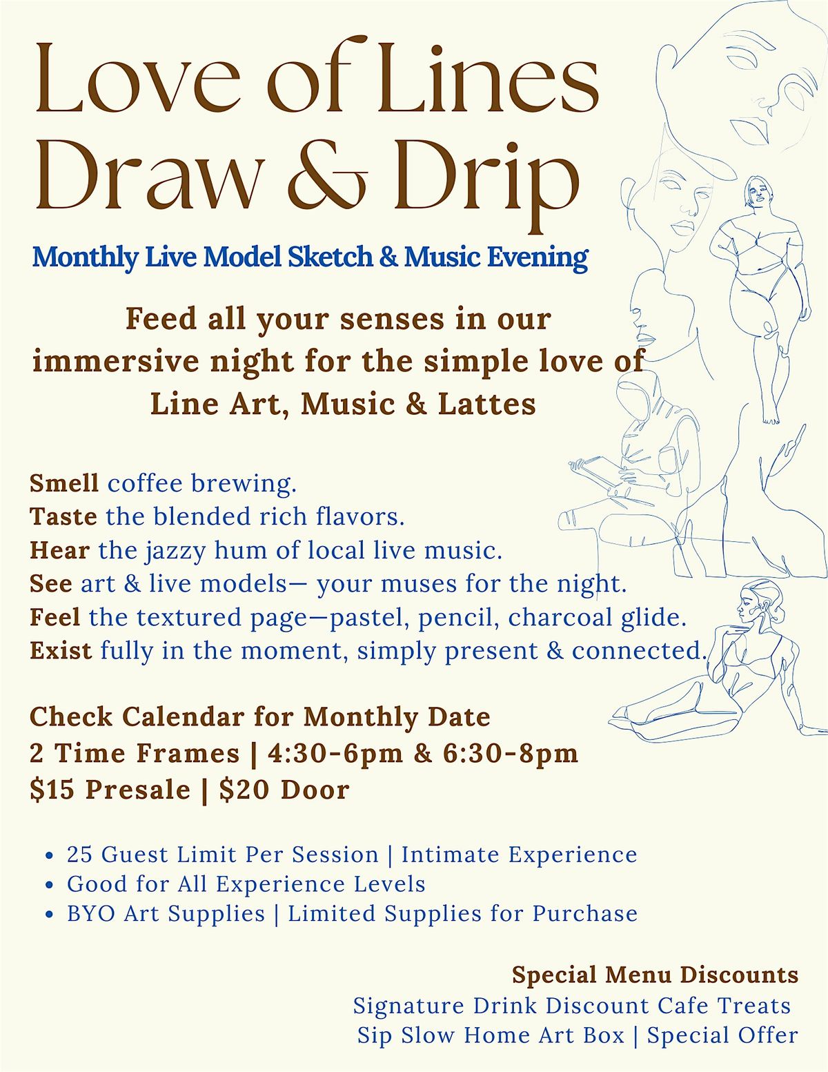 Draw & Drip :Live Music & Model Sketch Night in Old City @timeandpeacecafe