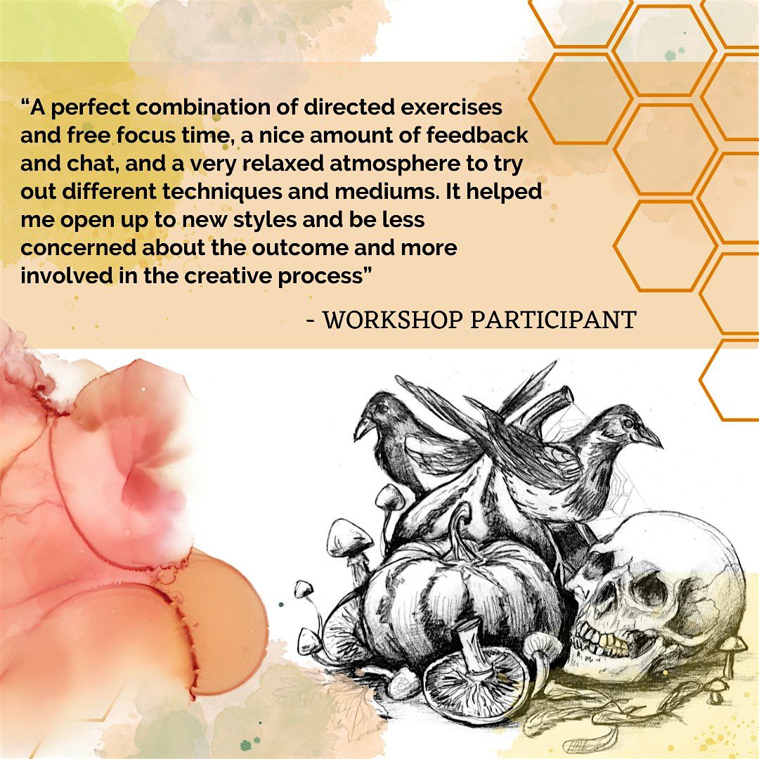 These workshops will guide you through a variety of different drawing techniques, in pencil, charcoal, chalk, pastel, pen, ink, gouache, watercolour and collage. Suitable for beginners and more experienced artists alike, you'll be introduced to a variety of mark-making techniques in a fun and pressure-free environment. We will explore artistic representations of Autumn across cultures and throughout history, and how they might influence your work.