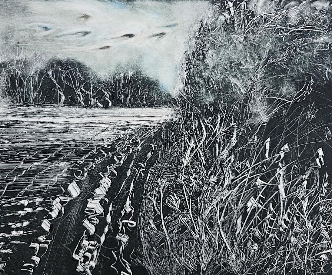 Join us for a creative outdoor session exploring the art of drawn-style monoprints. Working with blue/black oil-based ink on coated card, you’ll learn how to create striking monochrome prints by drawing directly into ink. Experiment with natural and found tools and discover how to lift ink with cotton buds or gauze for lighter effects.