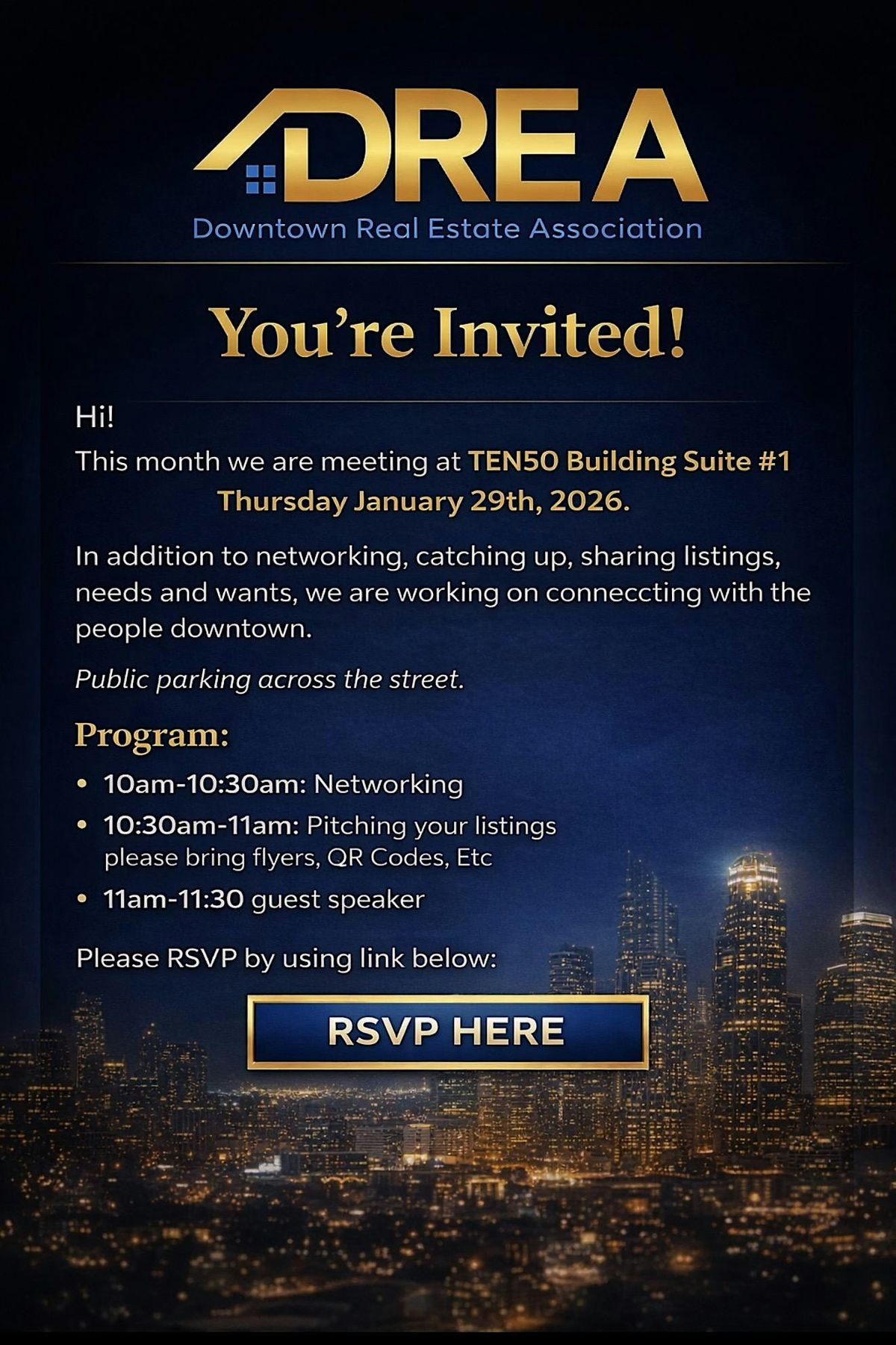 DREA Breakfast Meeting At TEN50 Thursday January 29th, 2026