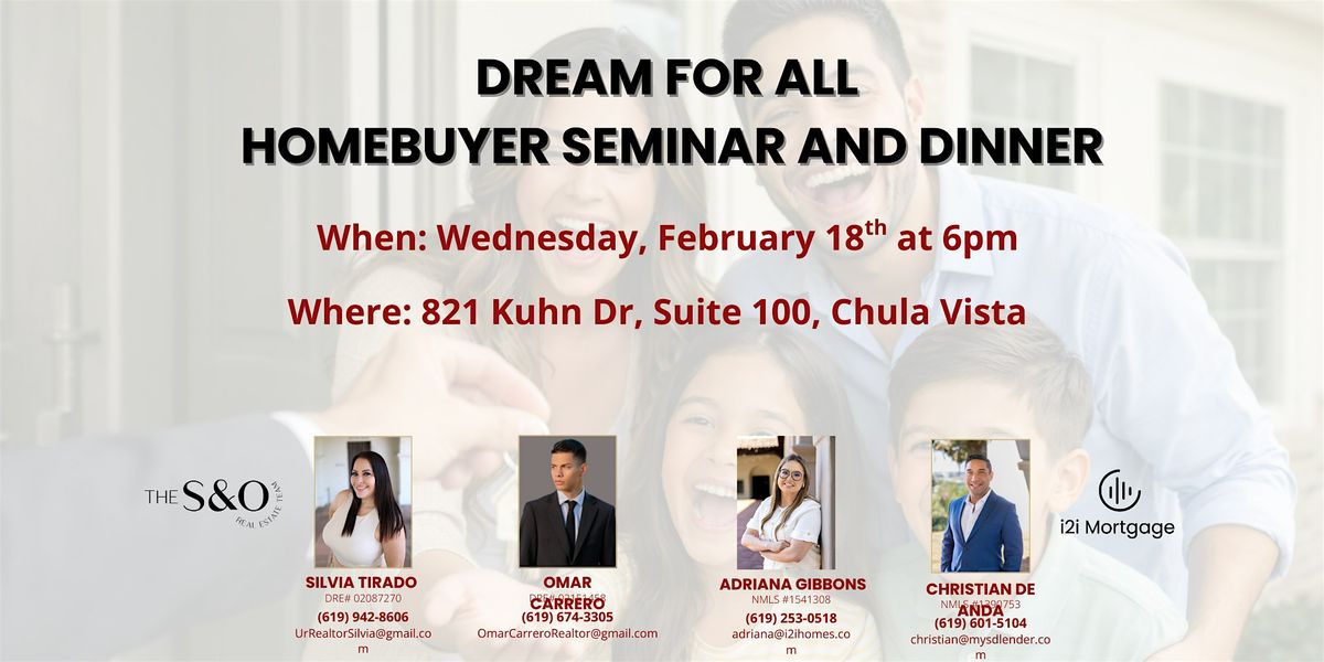 Join us for dinner and a Dream For All Homebuyer Seminar, where we’ll walk you through everything you need to know about this highly sought-after California program — and help you apply correctly so you don’t miss out.