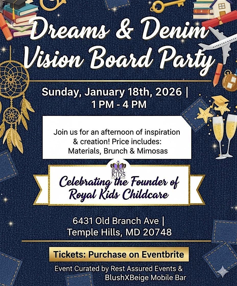 Get ready to dream big and wear your favorite denim at this amazing, in‑person event! Bring your creativity, your good vibes, and any magazines or photos you’d like to use as you design your perfect vision board. It’s the ideal time to set goals, share ideas, and connect with like‑minded people. Whether you’re focused on personal growth or simply want a fun crafting day, this event is for you.