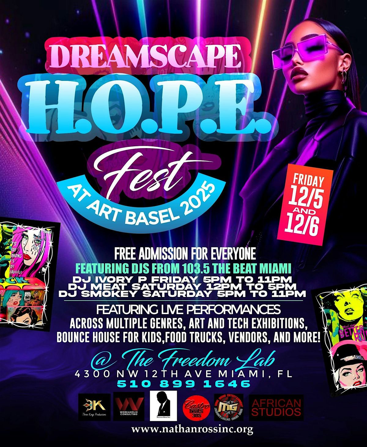 The “Dreamscape” Art & Tech Exhibition opens at 12pm ! Then, at 5pm, we activate the music and performance portion with Dreamscape H.O.P.E. Fest! Curated by Super Producer, Castro Beats, Dreamscape H.O.P.E. Fest features a soundscape of 30+ performers and entertainers across multiple genres of music!