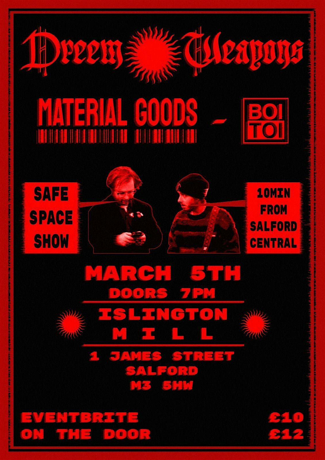 Dreem Weapons start their debut tour out in the north, in the DIY grassroots space of Islington Mill. Home to many amazing artits and events and noted for being a safe space venue for all people.