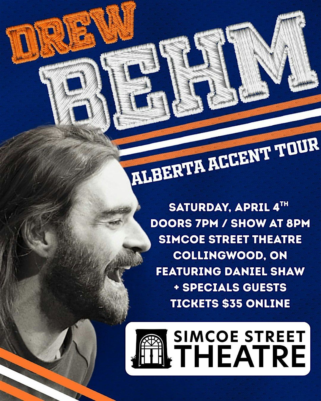Drew Behm is a nationally touring Canadian headliner who was raised in Alberta but now calls Toronto home. With over 15 years experience in comedy, Drew's mix of high energy and thoughtful jokes quickly made him a crowd favourite. Achieving industry success being named a New Face at the legendary Just For Laughs festival in 2021, Behm was already considered one of Canada's best before racking up over 100 million views for his "Alberta Accent" videos on Instagram. Don't miss Drew Behm one night only in Collingwood.