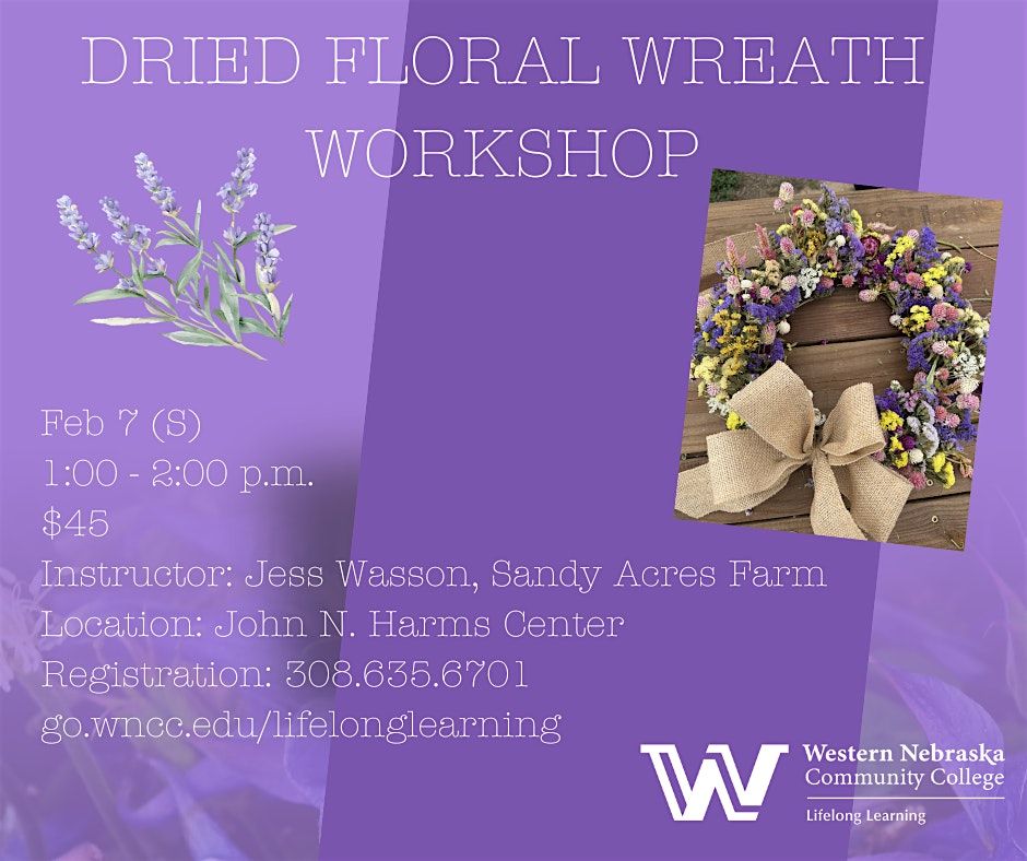 Join us for a fun workshop where you’ll design your own dried floral wreath using blooms grown on Sandy Acres Farm. We’ll cover simple techniques for arranging and securing dried flowers so you can take home a one-of-a-kind wreath made by you!