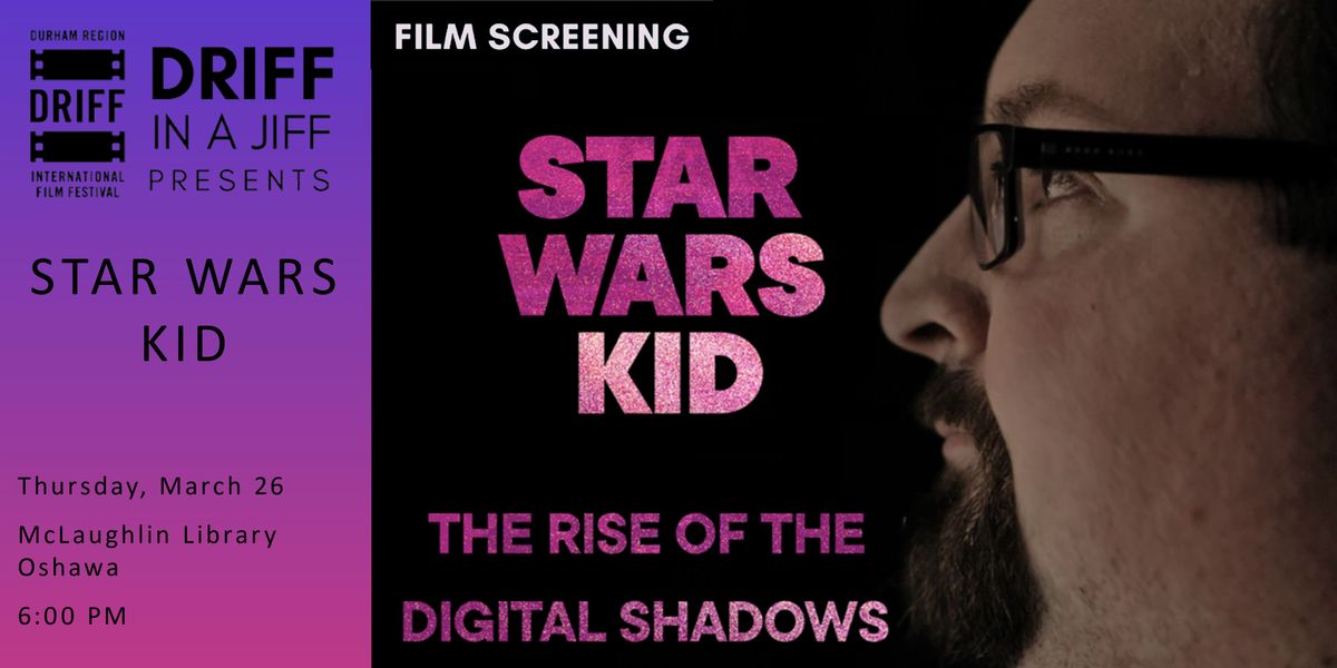 Join DRIFF in a Jiff for a FREE screening of 'Star Wars Kid: The Rise of the Digital Shadows' at the Oshawa Public Library McLaughlin Branch.