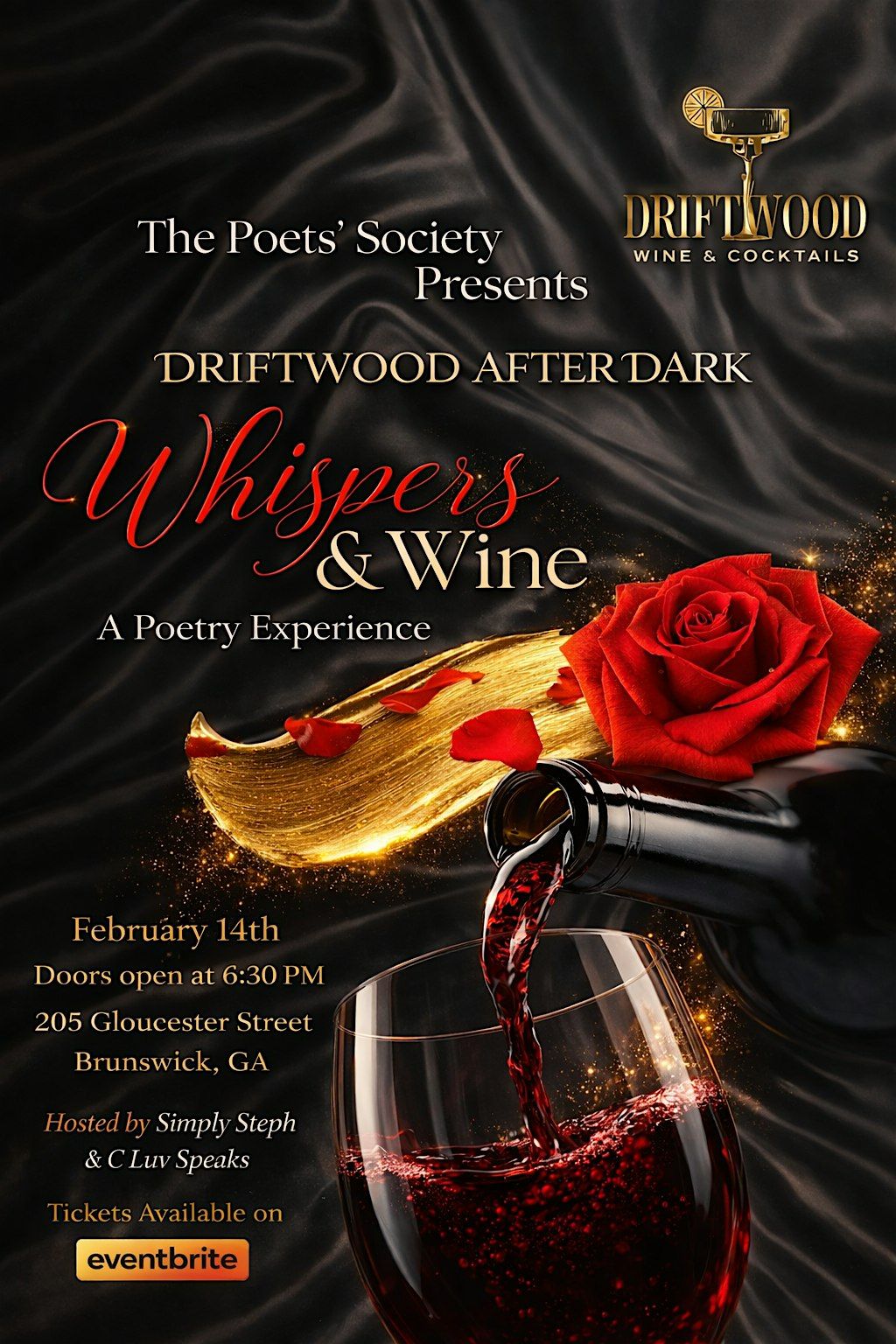 Step into an evening of elegance, emotion, and expression at Driftwood After Dark, presented by The Poets’ Society.